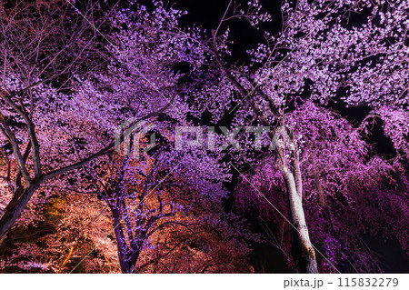 小田原城公園的夜景,大堀端街兩旁的櫻花樹被燈光照亮【神奈川縣小田原市】