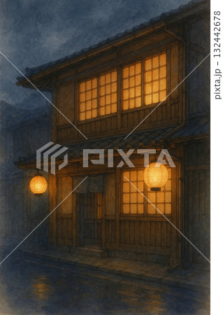 巴黎雨夜情侶手牽手漫步街道 水彩插畫