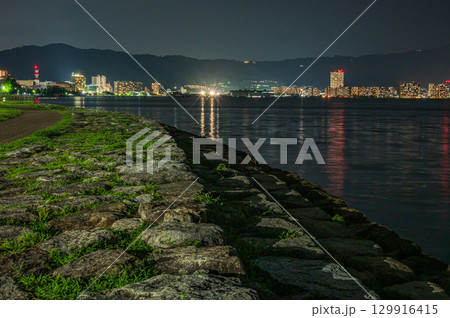 大津市琵琶湖畔渚公園的夜景