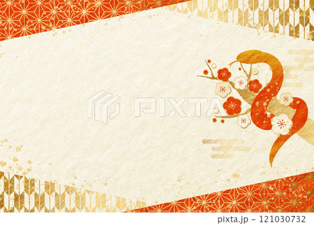 2025蛇年新年賀卡日本圖案與梅花日本紙橫