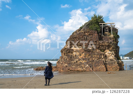 在新潟Itoigawa Aoumi海岸的Nigawa河比率銷售(Nukawa wowome)雕像