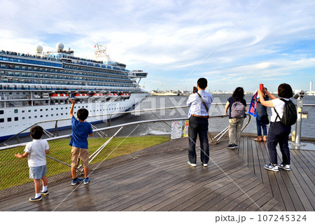 日本橫濱市景奇景Ⅲ...兩艘日本豪華遊輪飛鳥二號和飛鳥三號一起啟航。豪華遊輪時代開始了…