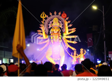 Lord Murugan statue with colorful kavadi in Thaipusam