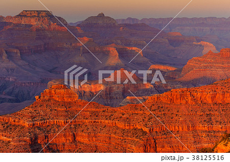 大峽谷國家公園(南緣)南牆被美國亞利桑那州晨光點照亮