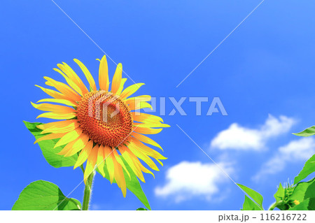 清澈的藍天和鮮豔的向日葵