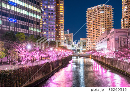 《東京》目黑川冬櫻燈飾塔大廈夜景
