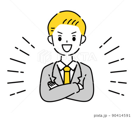 一名男子抱著雙臂看著鏡頭,因銷售或商務談判等方面的成功而大笑。
