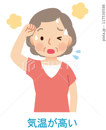一位婦女在炎熱天氣中用手帕擦汗的插圖素材