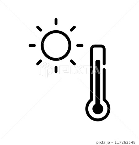 顯示熱量和溫度的溫度計的簡單插圖(夏季,中暑警告)