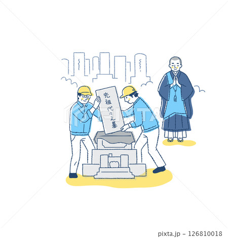 一家關閉墳墓並拆除墓碑的公司和一名僧侶