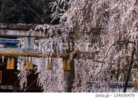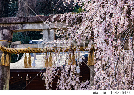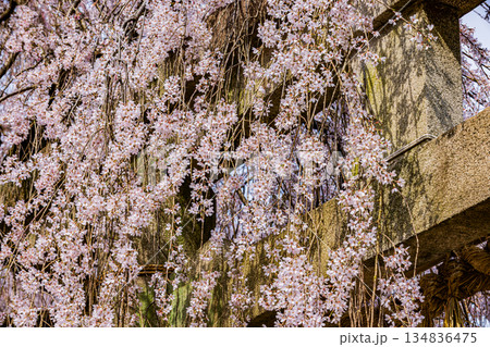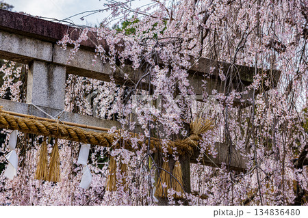 大石神社鳥居與垂枝櫻花(京都市山科區)