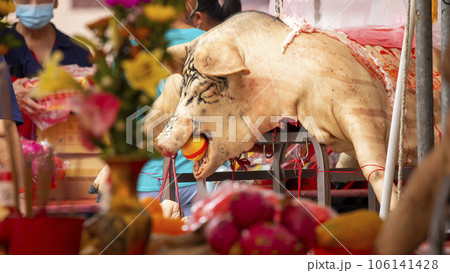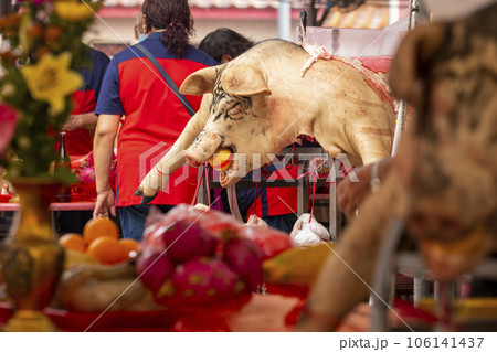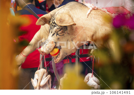 中國鬼節福都宗教祭祀大女神中國鬼節普渡宗教祭祀大神豬