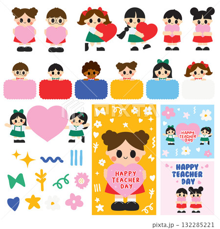 Outline of teddy bear, bunny, puppy, flowers, star, heart, apple, orange, rainbow, rain and clouds for cartoon characters, animals, zoo, souvenir shop, cute patch, kid colouring book, art, painting