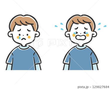 哭泣的男孩和女孩插圖集,全身,向量圖
