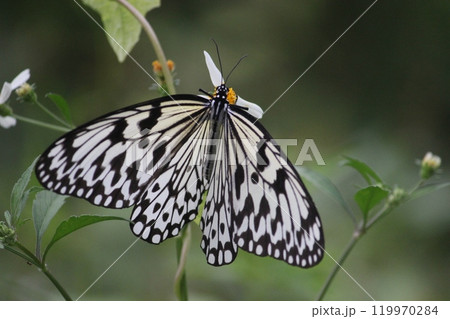 拍攝在花叢裡的大白斑蝶採食花蜜特寫照片