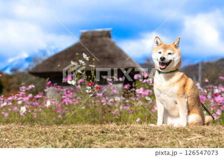 日式房屋背景的柴犬 可愛的柴犬 柴犬 Akane
