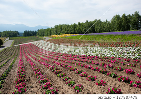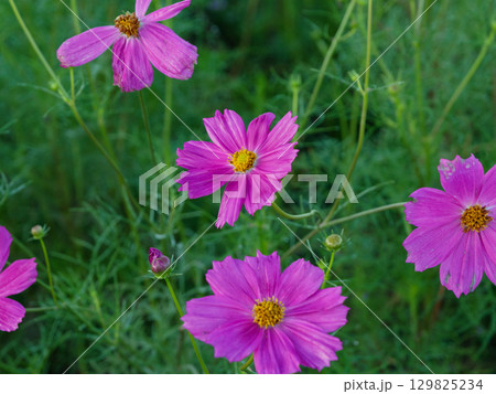 清晨的陽光下,大波斯菊田沾滿了晨露