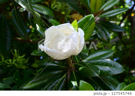 沐浴在晨曦陽光下的泰山玉蘭花和花蕾