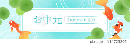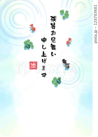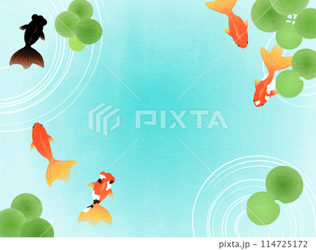 夏末賀卡的模板背景材料,上面有金魚在水彩中游動的夏季圖像