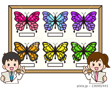 圖說:一位醫生和一位科學家正在對蝴蝶標本進行實驗。