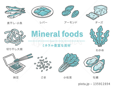 一組富含各種礦物質的食物插圖(日本)