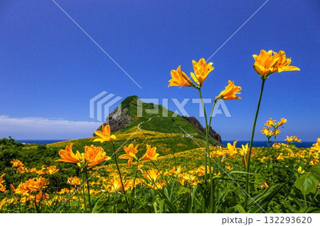 新潟縣佐渡島小野龜市:小野龜花島上的飛島萱草,五月至六月