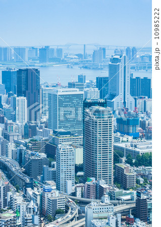 俯瞰東京灣和房總半島摩天大樓的東京灣城市景觀
