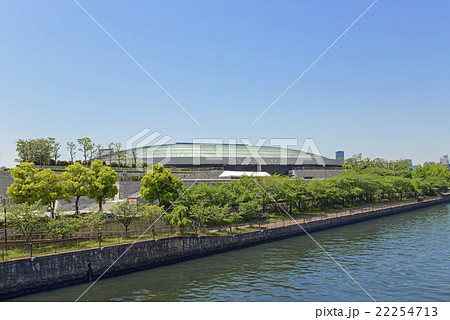 大阪商業公園在夕陽下熠熠生輝,從大阪城內眺望