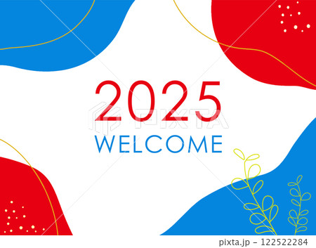 2025 年大阪世博會圖像顏色、紅色和藍色植物插圖中的自然框架
