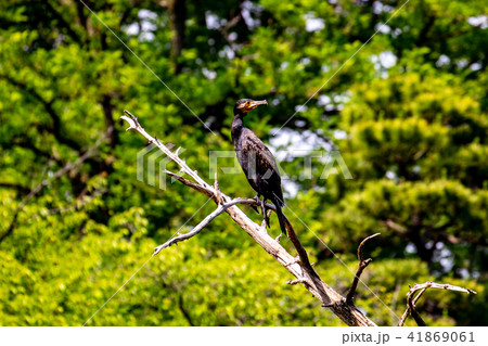 站在滋賀縣大津市琵琶湖湖畔的鸕鶿