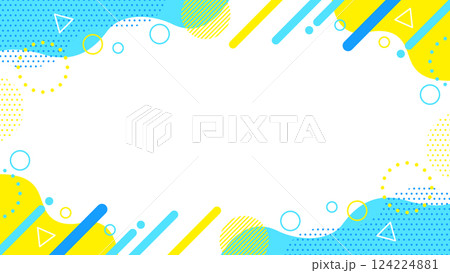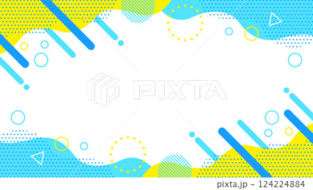 夏季可用的可愛抽象幾何圖案框架材料傳單、網絡、視頻 16:9 尺寸淺藍色黃色