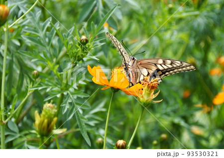 燕尾蝶棲息在黃色的波斯菊上
