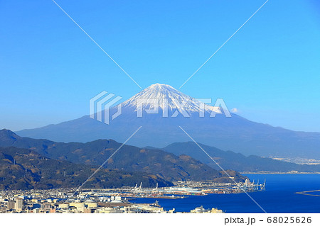 靜岡市(靜岡縣)冬日晴朗的一天,從日本平夢露台觀景走廊看到的景色