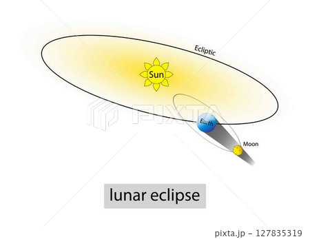 illustration of astronomy and physics, lunar eclipse, A total lunar eclipse takes place when the Earth comes between the Sun and the Full Moon and blocks the Sun direct rays from lighting up Moon