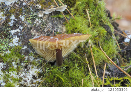 生長在倒下的松樹上的日本雪鬆平菇