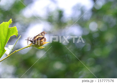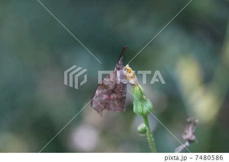 生物昆蟲鯉魚的黃褐色,褐色的葉子的葉子刺痛著。