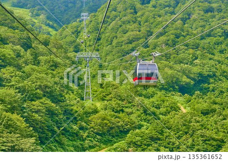谷川岳索道穿過鬱鬱蔥蔥的綠地。