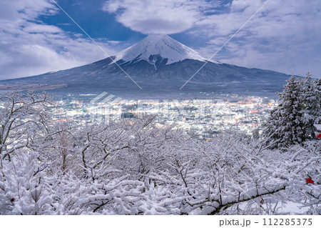【山梨郡】富士山與白雪皚皚的新倉山淺間公園/日本雪景