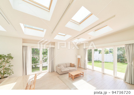 Roof structure of a modern building Made of wood and covered with transparent tile bringing natural light into the building