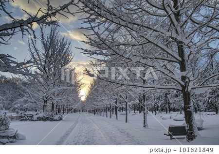 白雪皚皚的四月天童公園