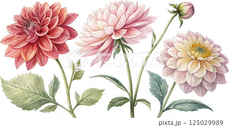Watercolor Dahlia Flowers