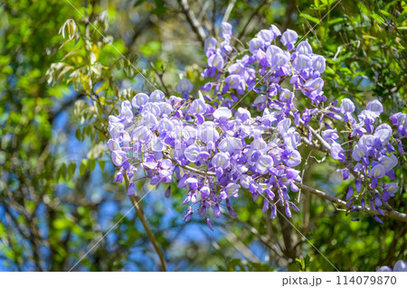 藍白花陽台園藝。 5月至10月,可重複欣賞清新的藍白花。