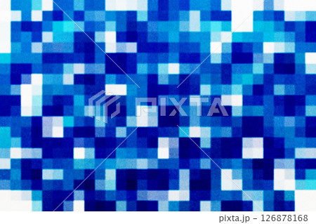 略微模糊的藍色方形馬賽克和粗糙紋理的紙張