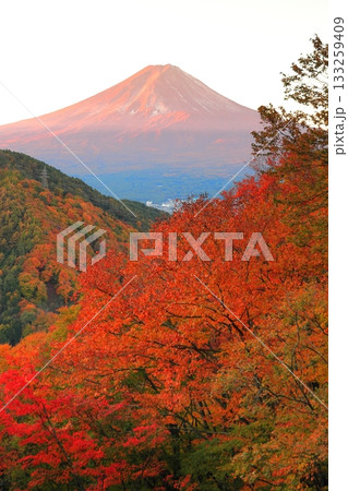 【山梨縣】從禦坂公路眺望富士山,正值秋季紅葉最盛時期