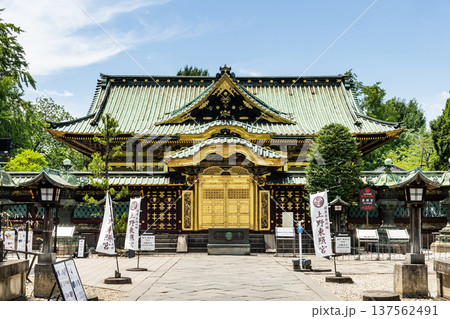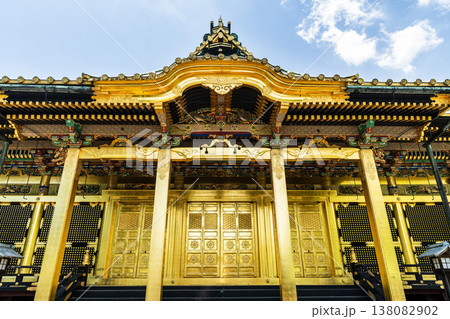 Building view of the Tosho-gu in Ueno Park, Taito, Tokyo, Japan. This shrine enshrines Tokugawa Ieyasu, the first shogun of the Edo shogunate.