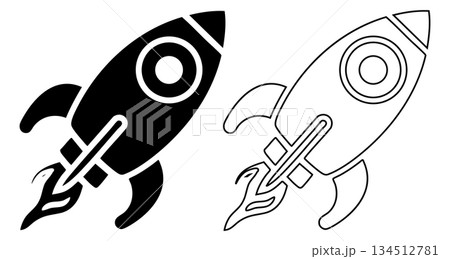 Black and White Rocket Icon Design for Technology and Space