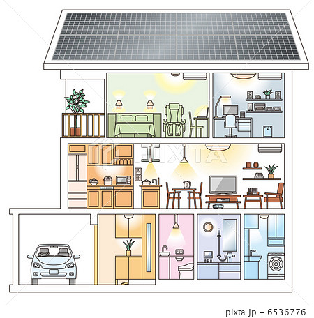 房屋橫截面 太陽能全電動智能房屋物聯網等 圖片(3DCG)