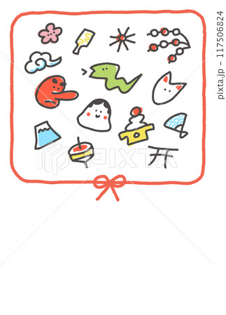 可愛的幸運符新年賀卡插畫素材令和7 2025 日式水引