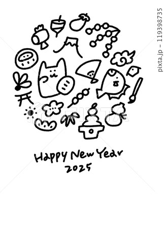 可愛的新年賀卡新年幸運符手繪2025年線條畫