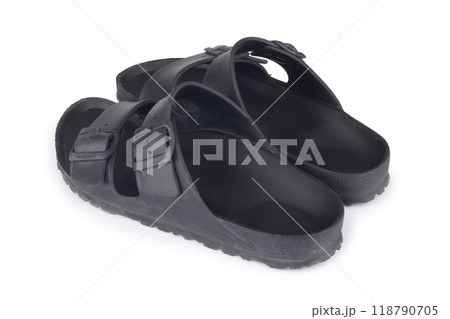 Pair of beach slippers. Summer flip flops. Flat vector illustration
